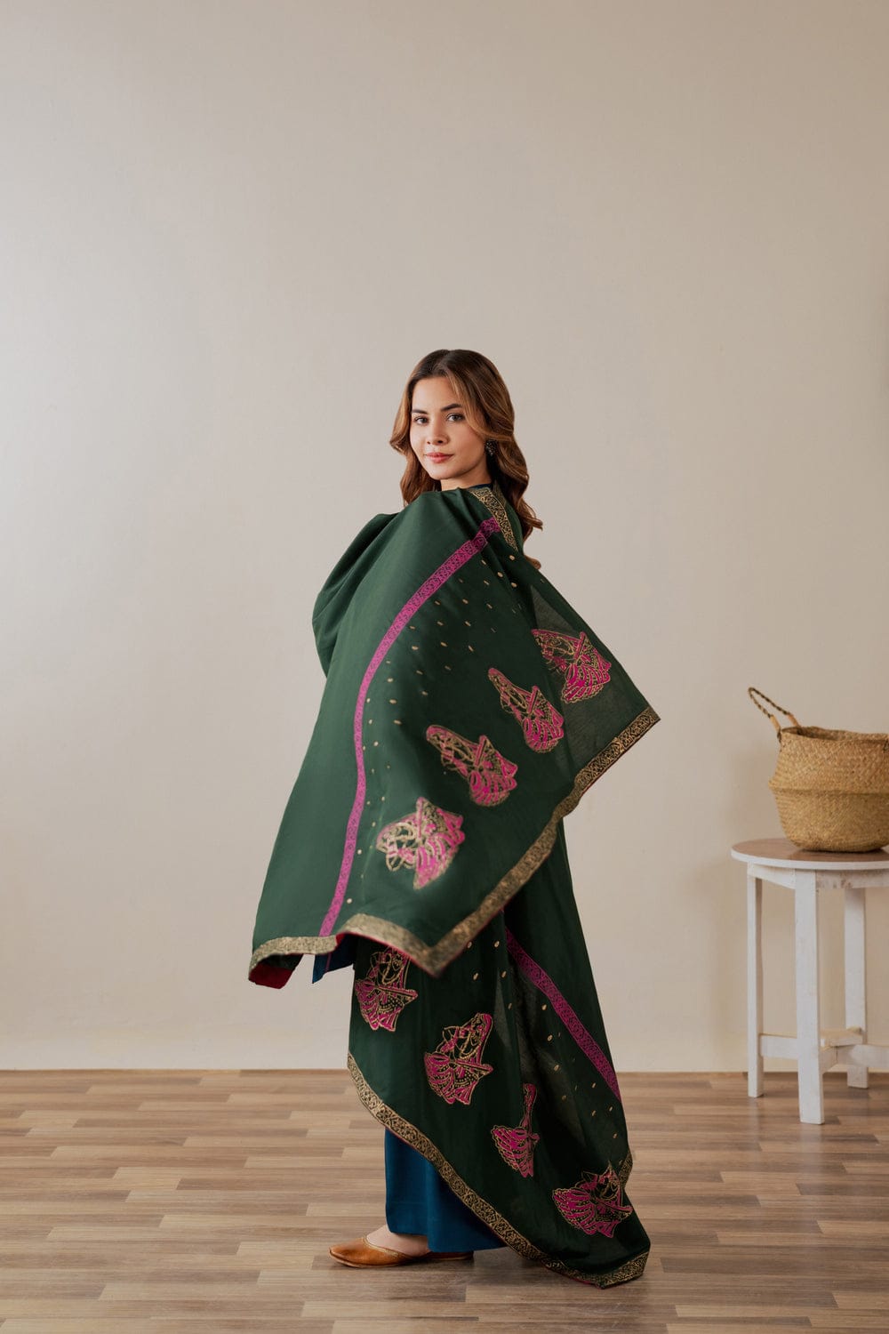 Deep green hand block marina shawl