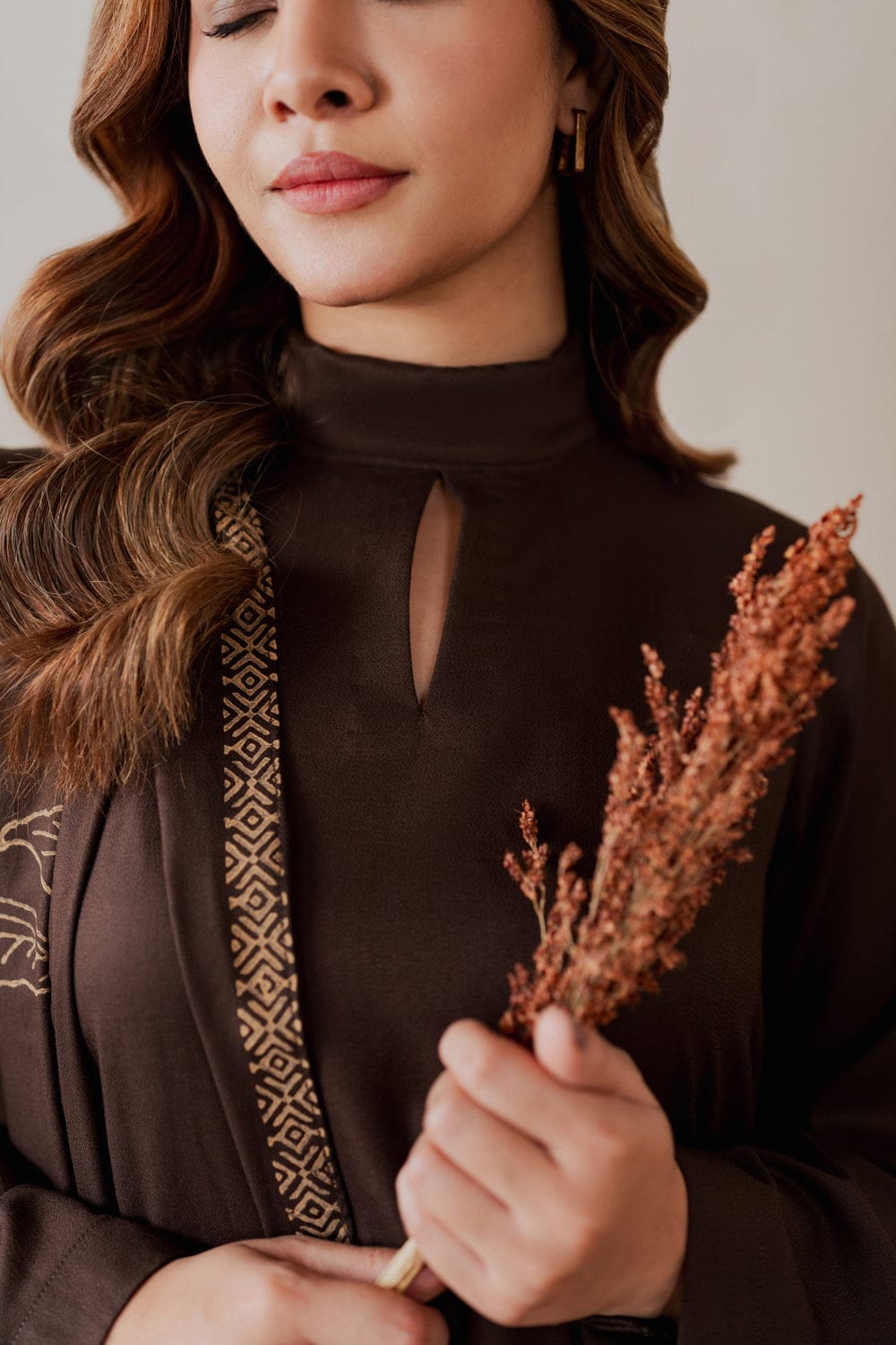 Dark brown marina shirt paired with a straight fit trouser.