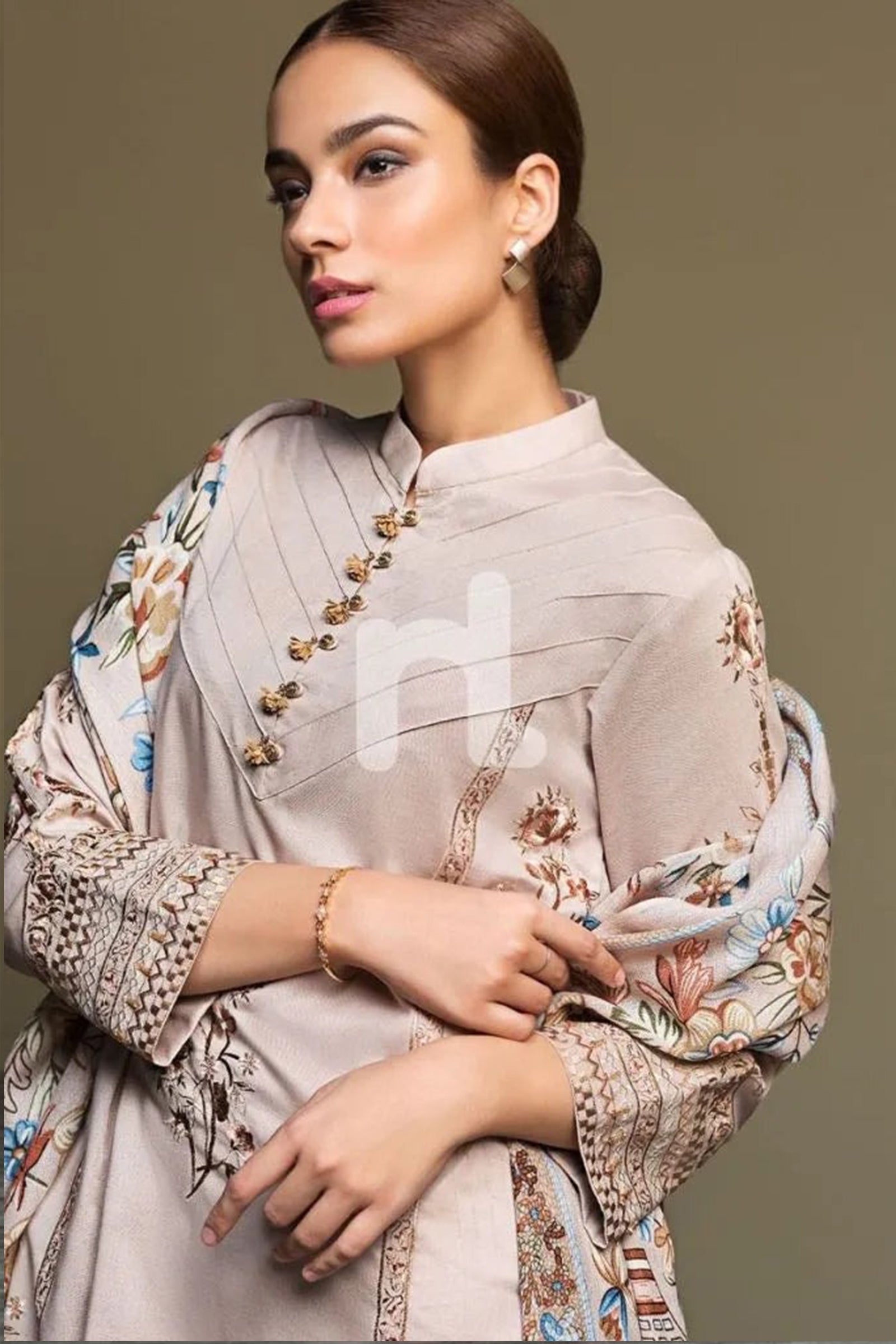 ZN589-WINTER 3PC Dhanak Embroidered suit with Printed Shawll